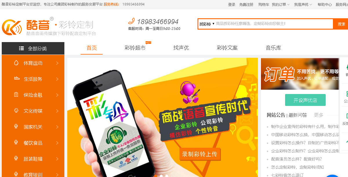 酷音彩铃网,手机固话彩铃制作上传与挂机短信设置